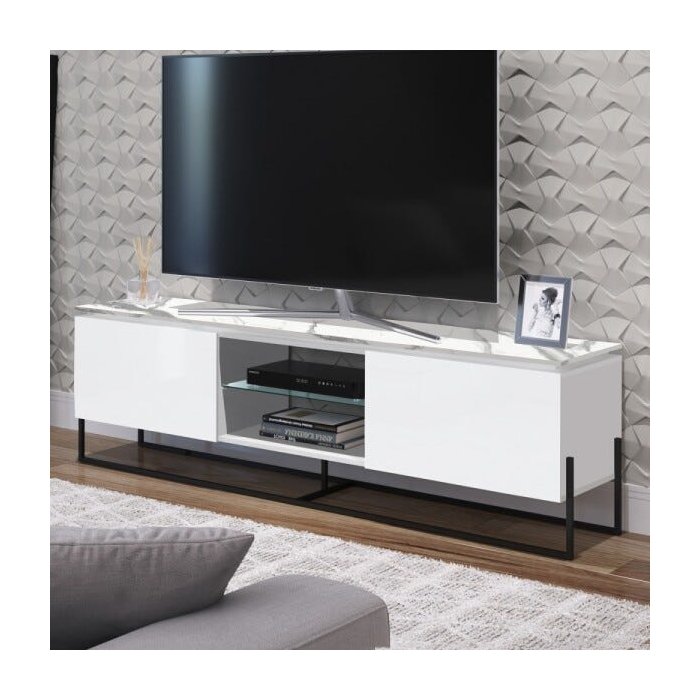 Rack com Painel para Tv até 58 Polegadas Vesta Thassos/branco/preto - Artesano