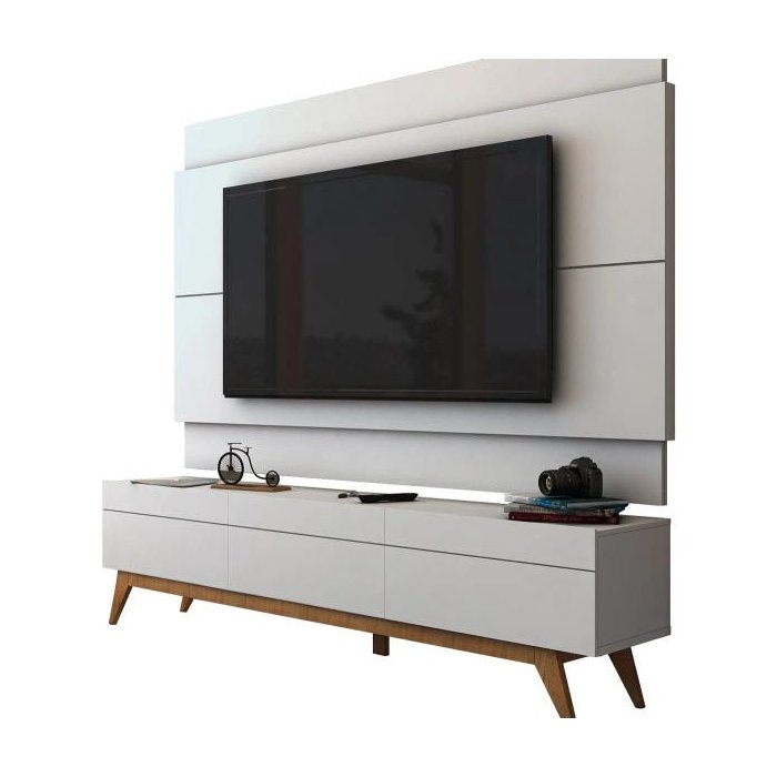 Rack com Painel para TV até 60 Polegadas Branco Classic 3 Gavetas 220cm - Imcal Móveis Branco