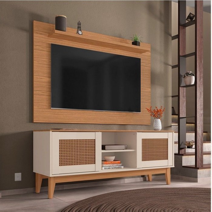 Rack com Painel para TV até 60 Polegadas Retrô Safira Versátile Casa D Off White/Noce