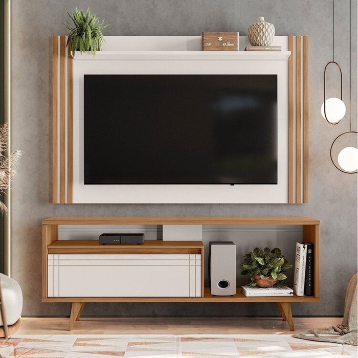 Rack com Painel para Tv até 65 Polegadas 173cmx163cm e Ripado Freijó/Off White