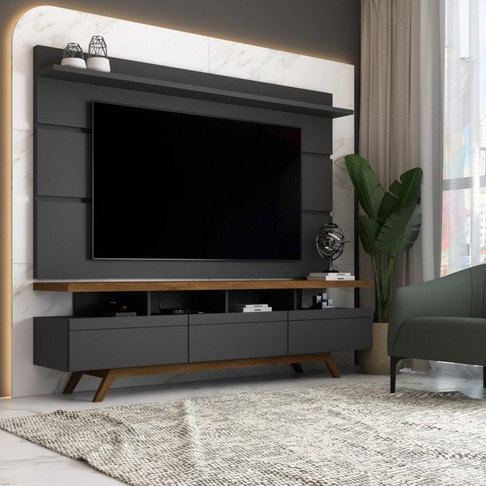 Rack com Painel para Tv até 72 Polegadas Armênia 3 Gavetas Black/freijó - Panorama Móveis