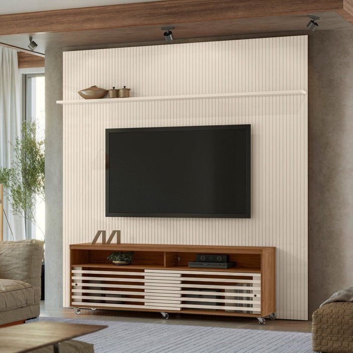 Rack com Painel para Tv até 75 Polegadas New Prestige Cinamomo/Off White