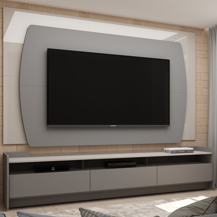 Rack com Painel para TV até 75 Polegadas Sublime 220 Gelius Móveis Cinza/Off White