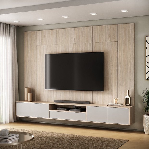 Com estrutura imponente de 200 cm de altura e 270 cm de largura, o painel é ideal para TVs de grandes dimensões, suportando modelos de até 85 polegadas. Seu design transforma a sala de estar em um verdadeiro cinema particular, unindo conforto, tecnologia e sofisticação.