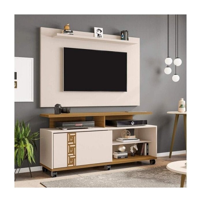 Rack com Painel para TVs até 50 Polegadas Topázio Kenzo Cinamomo/Off White