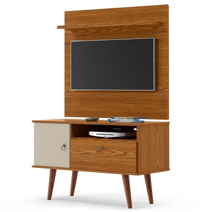 Rack com Painel Pequeno Para TV 32 Polegadas 90cm Yan Patrimar Cumaru/Off White