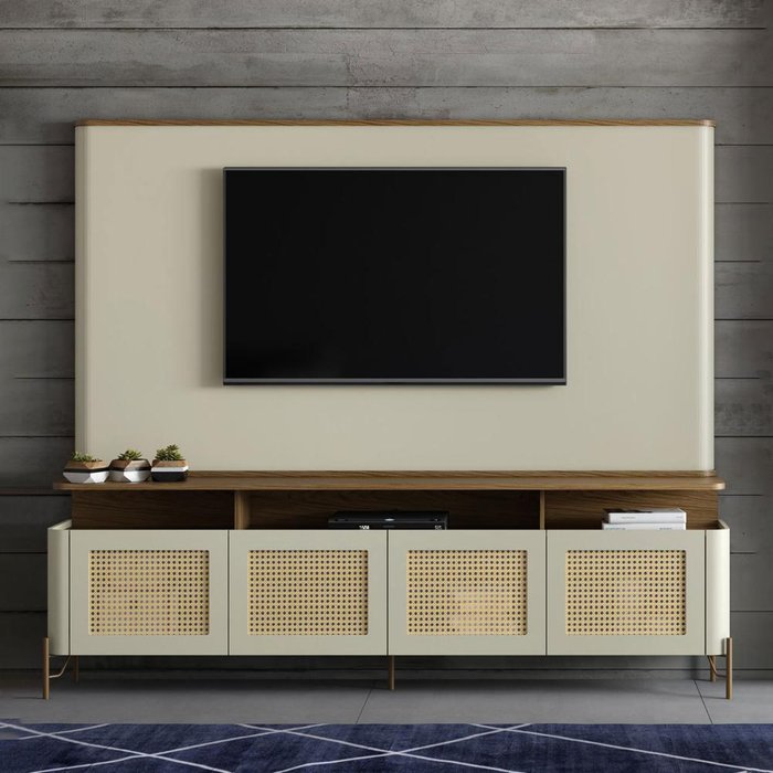 A Linha Bend traz Tendência e Inovação com um toque de arte. Esse Rack e Painel combinam funcionalidade e elegância com um design inovador que destacam suas linhas curvas e orgânicas. Fabricados com materiais de alta qualidade e acabamento refinado, o rack se destaca pelas Portas Frontais revestidas com Palha Natural Sextavada, adicionando um toque de textura e originalidade ao ambiente. As curvas suaves do rack não apenas conferem uma estética visualmente atraente, mas também proporcionam um ambiente ergonômico para armazenamento e organização.
