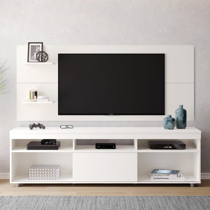 Rack com Painel Retrô Siena Twin com Pés de Plástico - Branco Branco