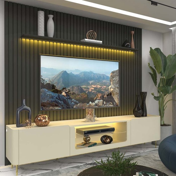 Rack com Painel Ripado para Tv até 85 Polegadas Led Pés Ferro 230cm Nobre/splendore Yescasa