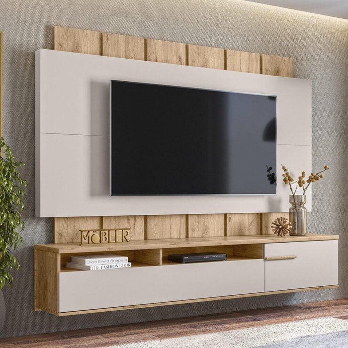 Rack com Painel Sena Suspenso para TV de até 70 - Carvalho/Off Ártico