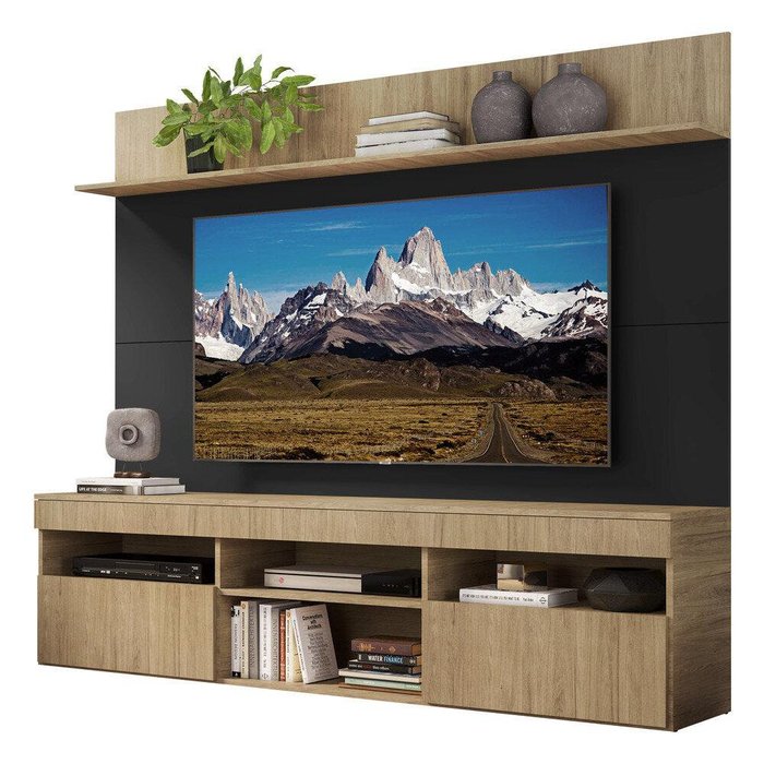 Rack com Painel TV 65" Madri Multimóveis V3365 Rustic/Preto/Rustic