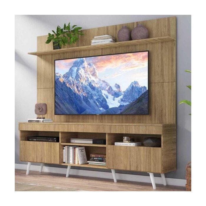 O Rack com Painel TV 65" Madri Multimóveis Pés Retrô e Prateleira é produzido em MDP com acabamento acetinado, que garante maior durabilidade e facilidade na limpeza. Possui 4 nichos com espaço para os equipamentos eletrônicos e objetos decorativos, 2 portas articuladas com um amplo espaço interno para manter seus pertences organizados e os pés palito, estilo retrô, em polipropileno, que dão um charme especial ao móvel deixando-o com um visual leve e permitindo você compor um ambiente com ar vintage e moderno ao mesmo tempo. O painel para TV de até 65” (suporta até 30 kg) com espaçamento para passagem dos fios, que permite deixar os cabos mais organizados e o visual clean, ainda possui uma prateleira para os objetos decorativos. Sua sala bonita e confortável para curtir os melhores filmes e séries.