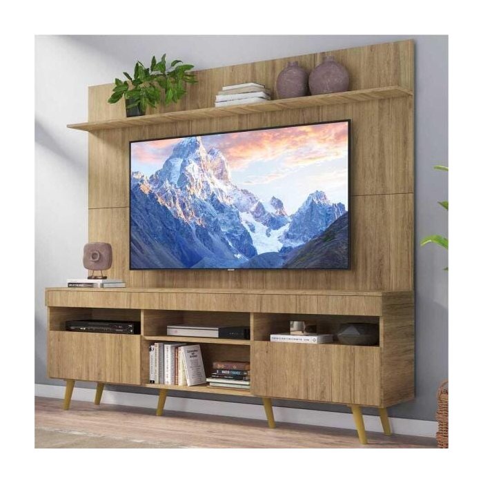 Rack com Painel Tv 65 Polegadas Madri Multimóveis Rustic com Prateleira e Pés Retrô Natural
