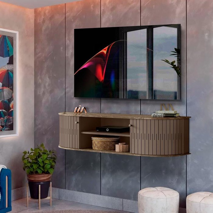 Rack Com Porta De Correr Curva Suspenso Para Tv Até 60 Polegadas Imperial Sepia Priell Shop Jm