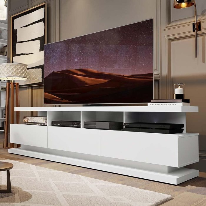 Com visual estiloso e autêntico, o rack branco Vivare é o mais novo queridinho da Germai. Com design moderno, esse rack faz a diferença em qualquer ambiente onde for utilizado. Possui um espaçoso tampo, onde você pode acomodar seus objetos de decoração ou porta-retratos, ou até mesmo colocar uma TV de até 70 polegadas. Logo abaixo, conta com quatro nichos, que são ideais para eletroeletrônicos ou até mesmo livros. Conta ainda com três amplas gavetas com corrediças telescópicas, garantindo ainda mais durabilidade e qualidade. O diferencial desse belo rack fica por conta dos rodízios, que podem ser montados para fica a mostra ou embutidos. Um luxo, não é mesmo? Renove o visual da sua sala com esse maravilhoso rack branco!