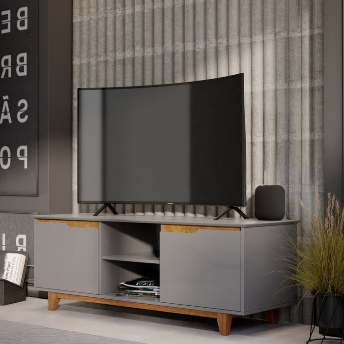 Rack de Televisão até 55 Polegadas 2 Portas Pés em Madeira - Mod.0225 - Cinza/freijó