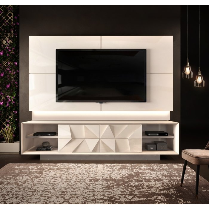 Rack e Painel Domani 3D Pirâmide Off White - Dj Moveis