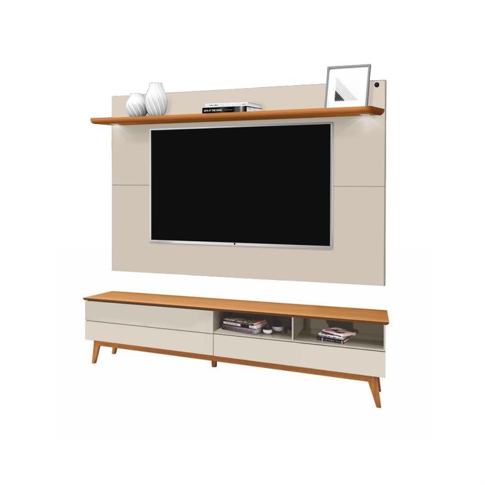 Rack e Painel para TV Arsenal 2 Nichos Off White Nature