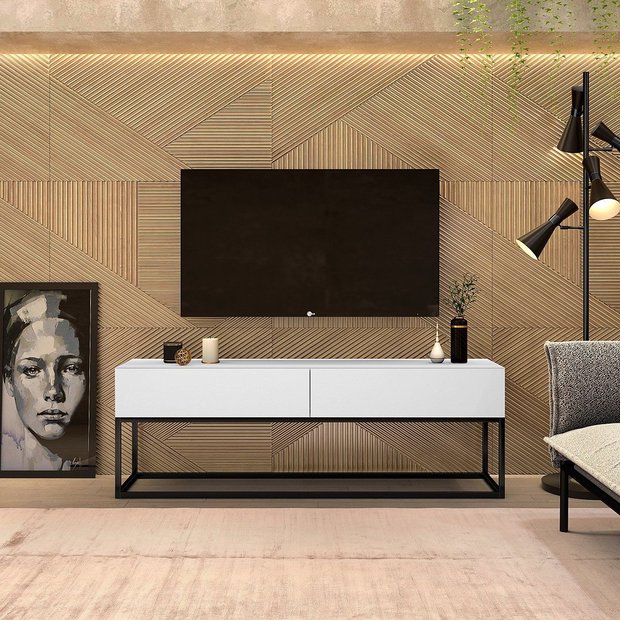Rack Eros Estilo Industrial 140cm Sala Estar Branco/Preto