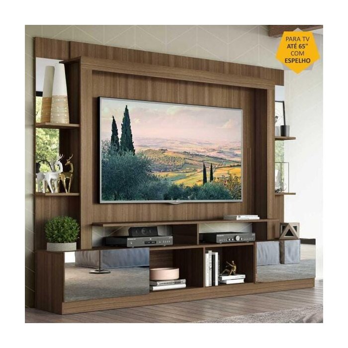 Rack Estante com Painel TV 65 Polegadas e Espelho Oslo Multimóveis Madeirado