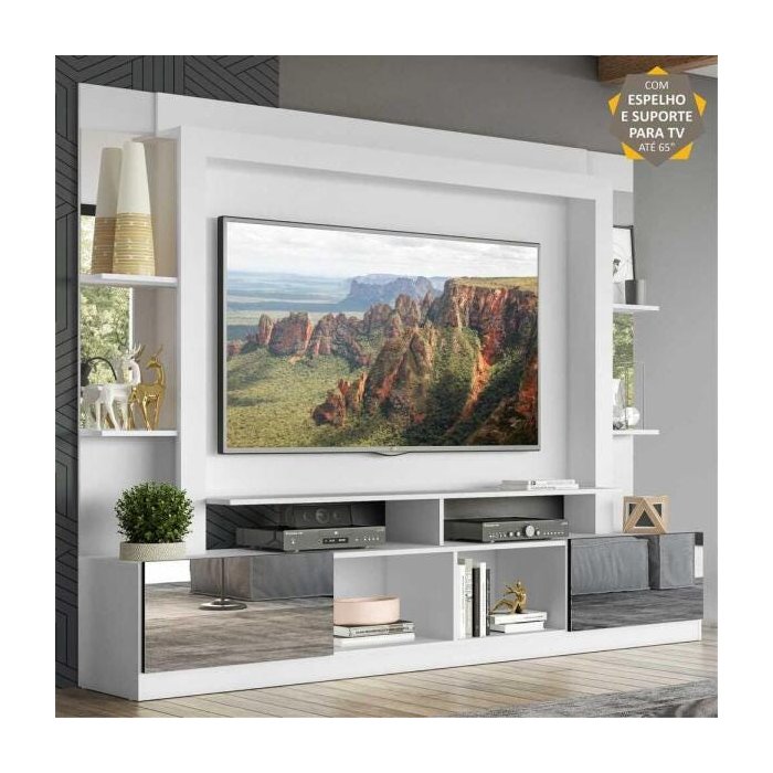 Rack Estante para TV até 65 Polegadas e Espelho Oslo Multimóveis Branco/Preto