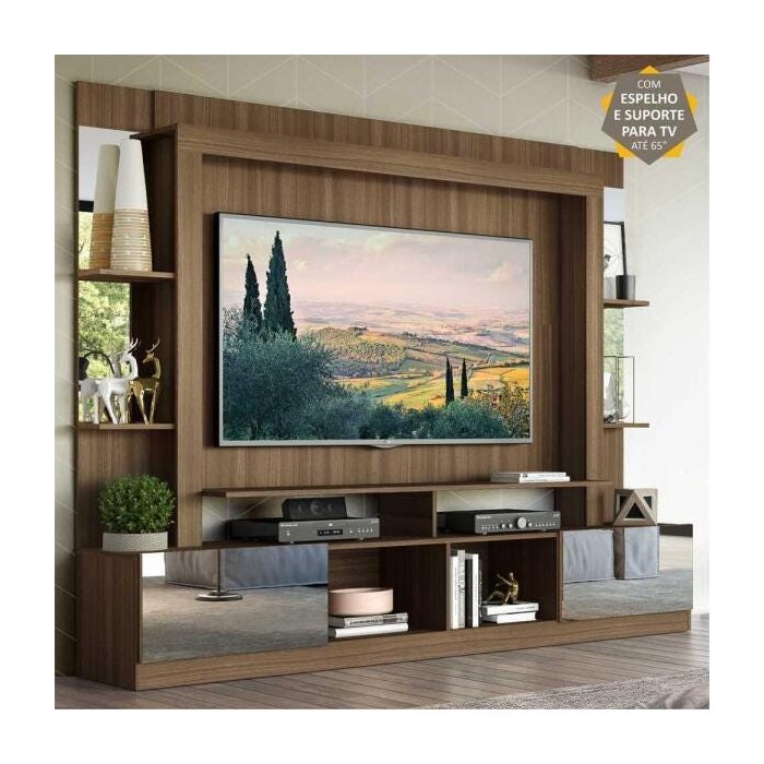 Rack Estante para TV até 65 Polegadas e Espelho Oslo Multimóveis Madeirado
