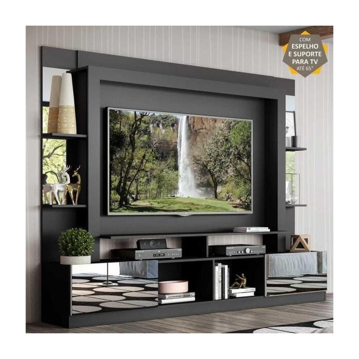 Rack Estante para TV até 65 Polegadas e Espelho Oslo Multimóveis Preto/Branco