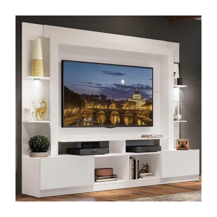 O Rack Estante TV 65" com Leds Berlim Multimóveis vai deixar sua sala de estar mais bonita e aconchegante para você curtir os melhores filmes e séries com a família ou amigos. Produzido em MDP, que garante maior durabilidade e facilidade na limpeza, além de um acabamento superior, possui 2 portas articuladas com um excelente espaço interno para organizar seus pertences. Além de prateleiras para que você possa personalizar a decoração, conta com nichos para acomodar todos os equipamentos eletrônicos. O painel para TV de até 65” (suporta até 30kg) possui espaçamento para passagem dos fios, que permite deixar os cabos mais organizados. Com design minimalista e de fácil instalação, as luminárias em LED proporcionam um visual mais moderno e você pode escolher em qual lugar do móvel deseja fixar. Com luz brilhante, as luminárias funcionam com 3 pilhas AAA que já estão inclusas.