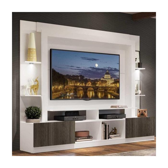 Rack Estante TV 65 Polegadas com Leds Berlim Multimóveis Branco/Tenerife