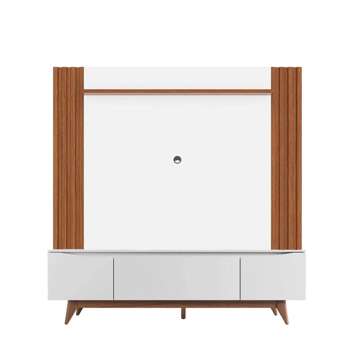 Rack Flynt com Painel Ripado Allure para Tv até 75” 3 Portas 219 Cm - Natural C/ Branco Fosco
