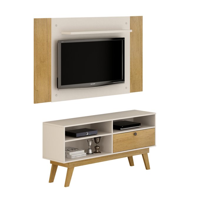 Rack Houston com Painel America para TVs de ate 50 Polegadas Valdemoveis Off White/Cinamomo