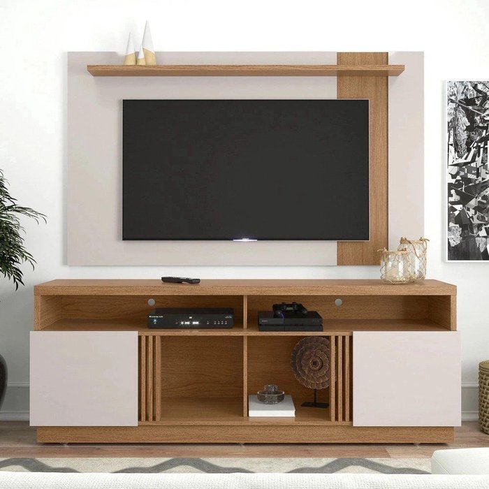 Rack Itapuã Leme Natura Real / Off White Para Tvs Até 70''