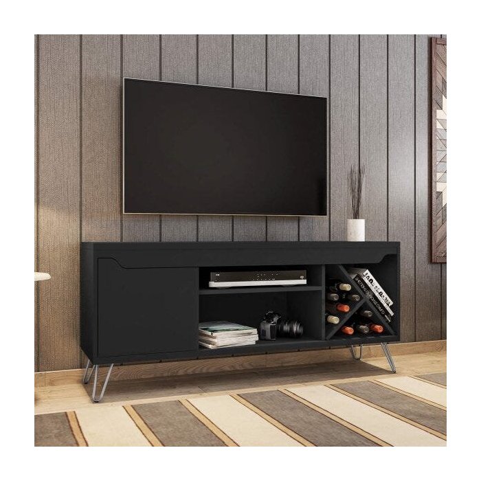 Rack Kenzo Estilo Retro com pés de Metal TVs até 55 Polegadas Preto Fosco
