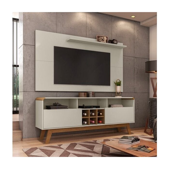 Rack Larimar com Painel para TV até 50 Polegadas Pés de Madeira Maciça Móveis Bechara