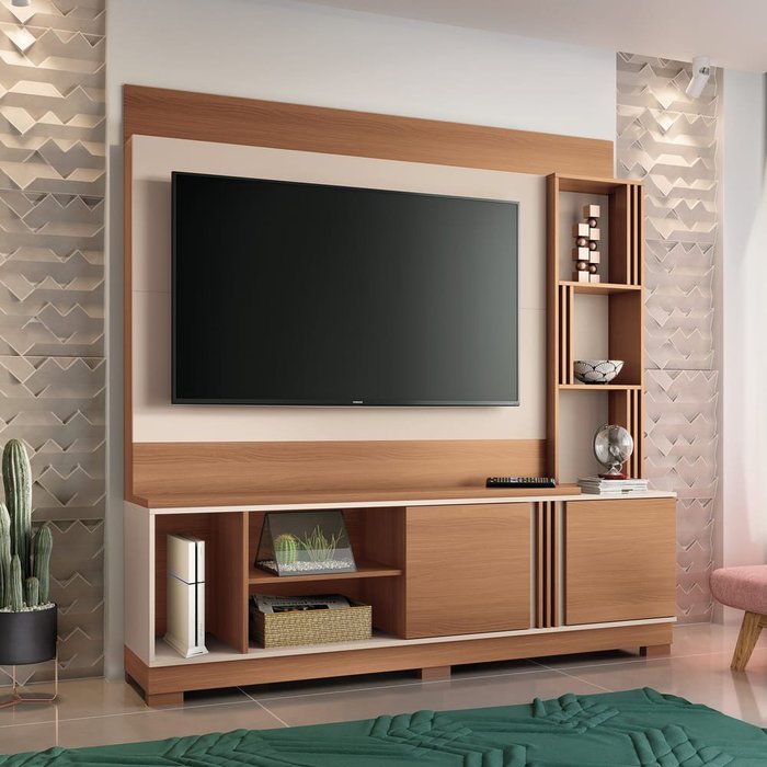 Rack com Painel Livelo Tv 55 180cm Nature Off White Tana Decor