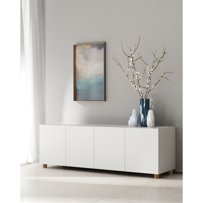 Rack com design minimalista que se integra a todo tipo de ambiente de estar, podendo servir para organizar tanto a decoração quanto os aparelhos eletrônicos como tv e seus consoles. Feito em mdf e melamina branca, materiais de qualidade e durabilidade. Possui pés em madeira maciça com acabamento em verniz incolor. (AxLxP) = 60x140x40cm