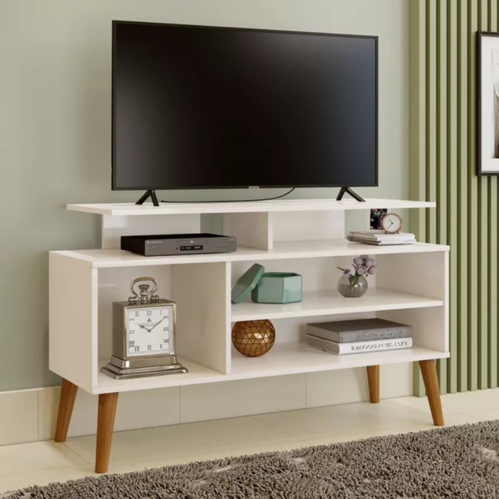 Rack Lyon Pés em Madeira Prateleiras Moderno para Tv Ate 42 Polegadas:off White