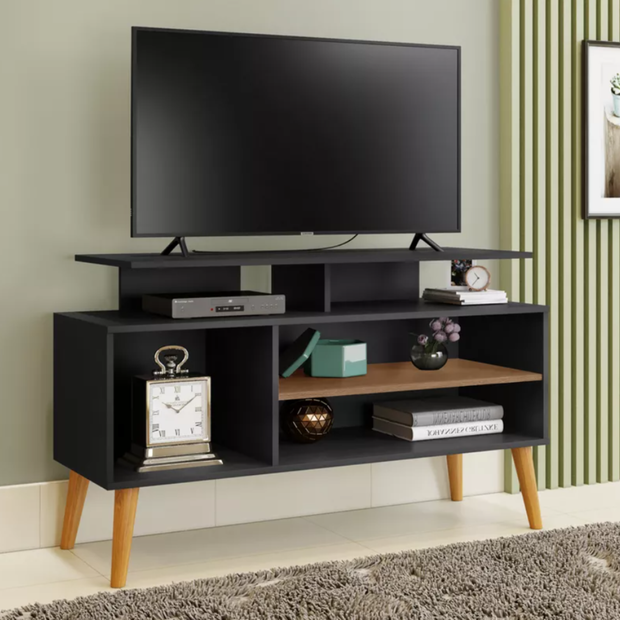 Rack Lyon Pés em Madeira Prateleiras Moderno para Tv Ate 42 Polegadas:preto Preto