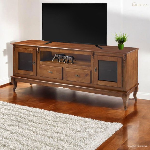 Rack Madeira Maciça com Pés Luis Xv 2 Gavetas 2 Portas e Nicho 60503 Linz Móveis - Imbuia Glazer Imbuia Glazer