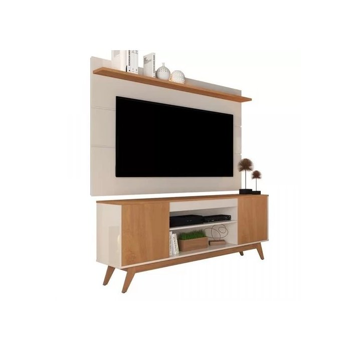 Rack Malibu Com Painel Para TV Até 64 Polegadas Vivare Off White/Nature – Giga Móveis