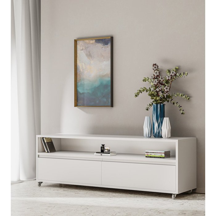 Rack com design minimalista que se integra a todo tipo de ambiente de estar, podendo servir para organizar tanto a decoração quanto os aparelhos eletrônicos como tv e seus consoles. Feito em mdf e melamina branca, materiais de qualidade e durabilidade. Possui rodinhas na base para um melhor deslocamento. (AxLxP) = 60x140x40cm