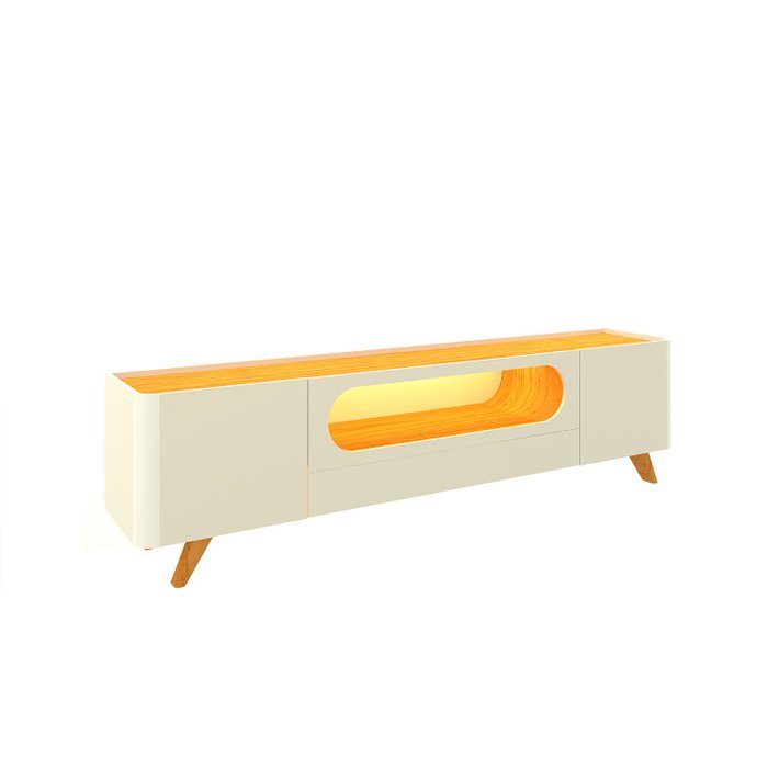 Rack Nobre 2.1 com Pés de Madeira Offwhite com Nature - Gelius Gelius Móveis