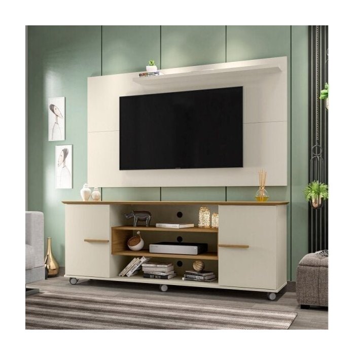 O combo Rack Odeon e Painel Chanel é perfeito para sua sala! Com design moderno e tampo chanfrado em ângulo ele irá agregar muito mais charme e requinte ao seu ambiente. Painel para TVs até 50 polegadas com Prateleira Superior. Amplo espaço para aparelhos eletrônicos, portas com puxadores de MDF revestido e dobradiças metálicas. Possui 6 rodízios sendo os frontais com acabamento cromado e 2 com trava.