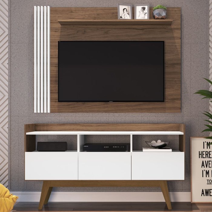 Um painel para sua TV e um móvel multiuso para guardar seus objetos! Este conjunto é puro charme. O painel é ideal para TV’s de até 50 polegadas. Seu design elegante contém prateleiras e brises laterais. O móvel multiuso possui três portas basculantes com dobradiças em aço e pés inclinados de madeira maciça. Com excelente espaço interno, você pode utiliza-lo para acomodar os objetos que não deseja deixar a mostra. As portas você pode escolher na cor preto ou branco. Fabricado em MDP com tratamento contra cupins e ecologicamente correto, possui no acabamento Melamina. Conjunto compostos pelos itens: BR73 + ES100.