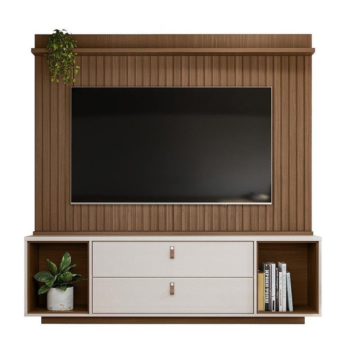 Rack Painel Home Ripado TV 75 Polegadas 183cm Dakar Lukaliam Cedro/Off White Perolizado