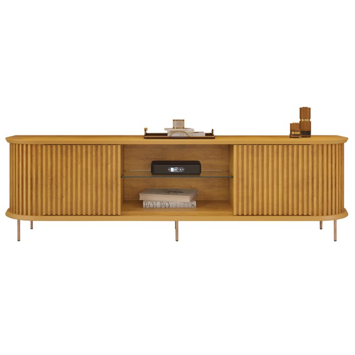 Rack para Sala Bancada de Tv 75 Pol 218cm Ripado World D04 Cedro - Mpozenato