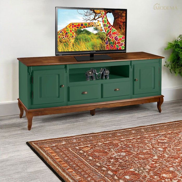 Rack para Sala com Pés Luis Xv 2 Portas 2 Gavetas e Nicho 60812m Hannover -verde Musgo/imbuia Glazer
