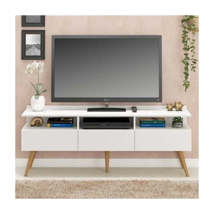O Rack Fellicci é a cara da nova geração de racks! Design inovador, mesclando o moderno com o Retro. Combinação de linhas retas com pés de madeira maciça com que irá encantar você. Ideal para Tvs de até 55 polegadas, ele conta com 3 nichos espaçosos ideais para acomodar os mais variados tipos de objetos de decoração, bem como aparelhos eletrônicos. Pés de madeira maciça com barras de sustentação, garantindo ao móvel maior resistência e segurança.