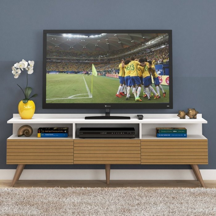 Rack para Sala de Estar 150cm 3 Portas Pés Palito Paris Fellicci Branco/Canelado