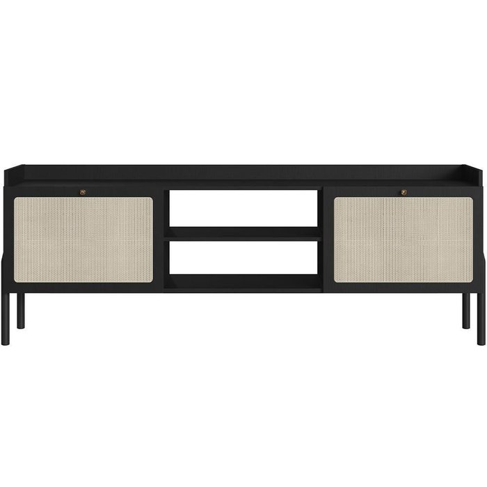 Rack para Sala de Estar Tv 65 Pol 183cm Pés Madeira Moss A03 Nero Preto